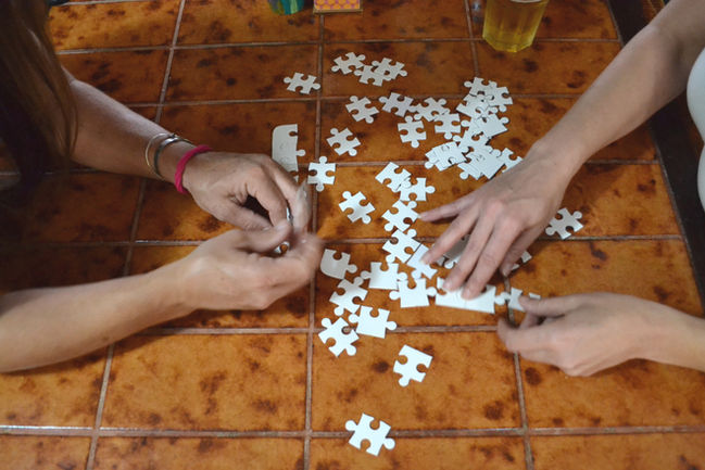 Serie de acciones en conjunto con amigas donde armamos en conjunto romprcabezas en blaanco, la charla , los recuerdos, las risas y copas compartidas se treansforman en un obleto lumínico.